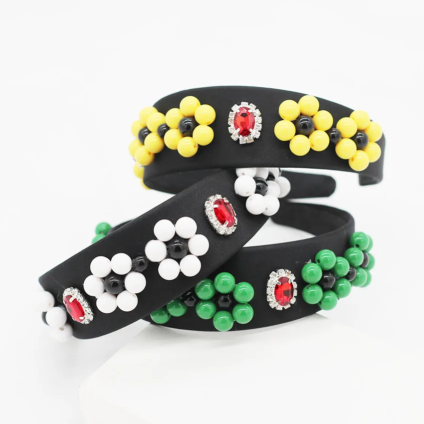 Hot Sale Beautiful fashion temperament ladies headband New Baroque Red Rhinestones Acrylic Beads Geometric F
