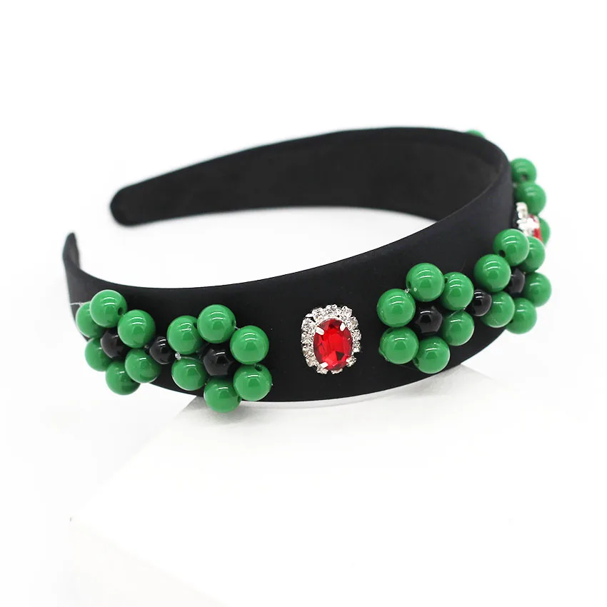 Beautiful fashion temperament ladies headband New Baroque Red Rhinestones Acrylic Beads Geometric F