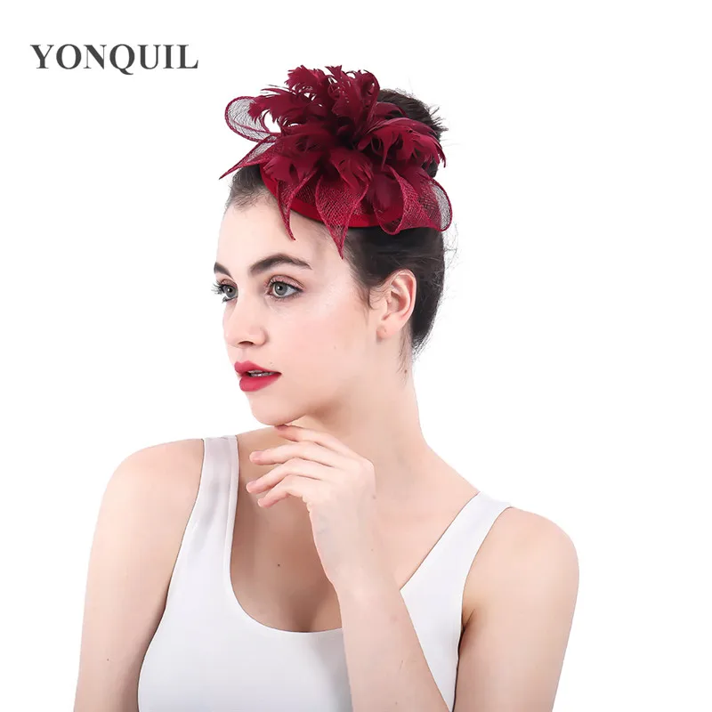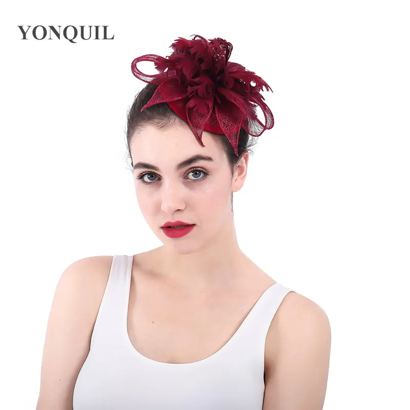 marron Feather Fascinator Hat Hair Clip European women Event Headwear Wedding Cocktail Party 2018 N