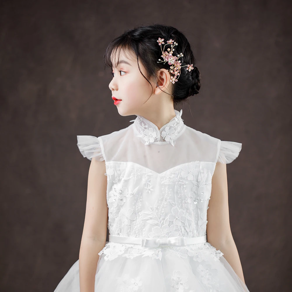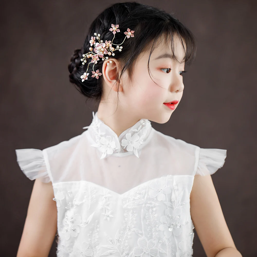 Pink Metal Flower Hair Clip Barrettes Headdress Jewelry Girls Fashion Pageant Prom Headwear Childre