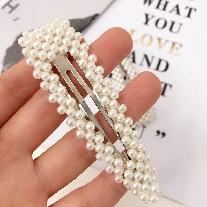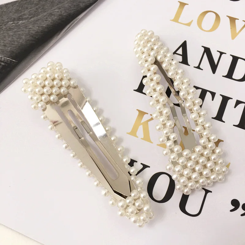 Boutique 2pcs Fashion Royal Pearl Beads Barrettes Hair Clips Solid Snap Clips Hairpins Princess Par