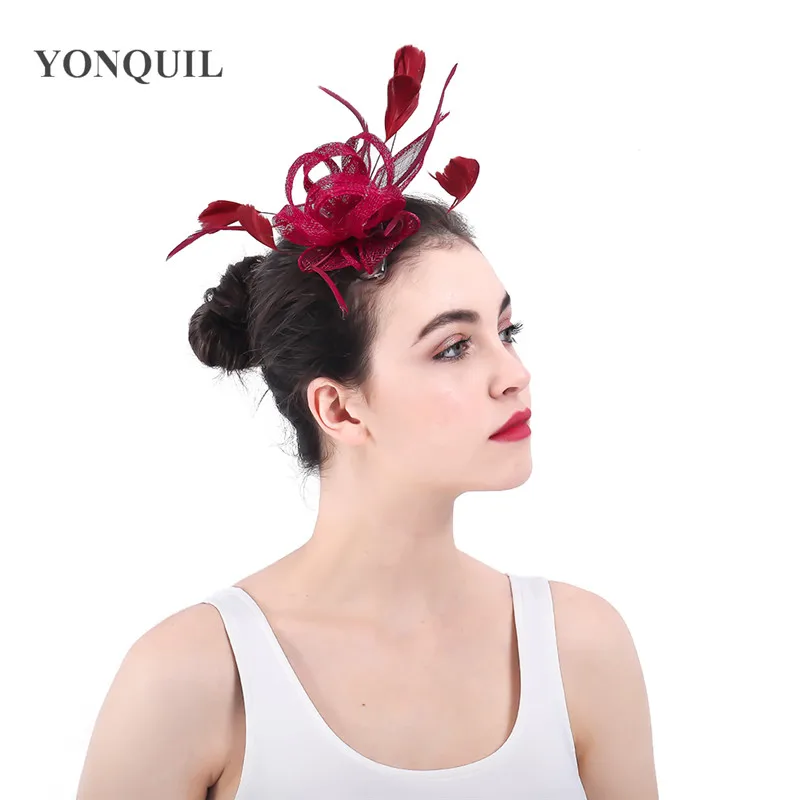 marron sinamay roses fascinator headwear church wedding bridal party hair accessories High quality