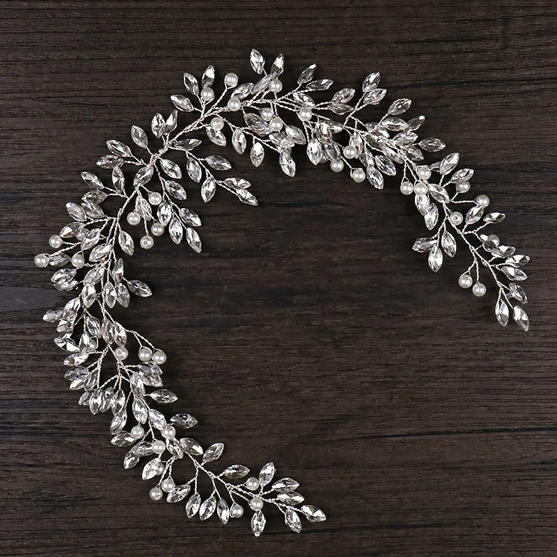 BEST QUALITY Le Liin Luxury Bride Crystal Pearl Headband Bridal Hair Vine Wedding Hair Jewelry Rhinestone Hair B